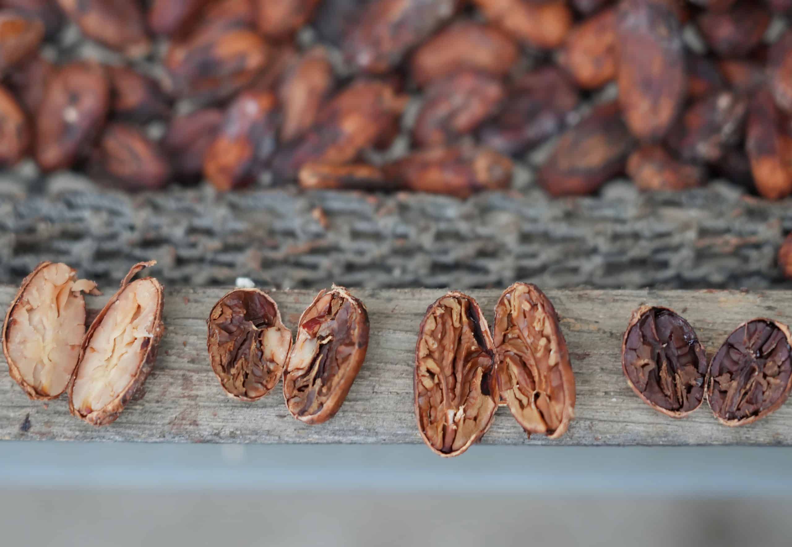 Cacao grows in small-scale agroforestry. This system promotes biodiversity and prevents deforestation. Farmers only use organic fertilizers and no pesticides.