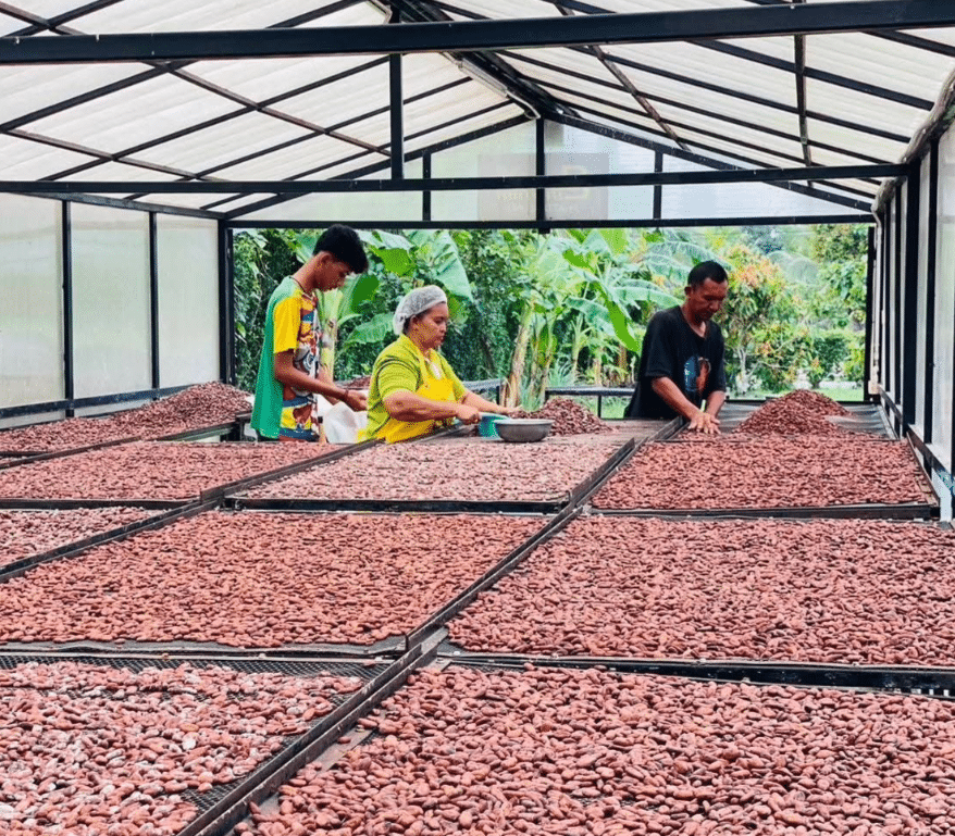 Cacao grows in agroforestry, an is intercropped with other fruits and crops.