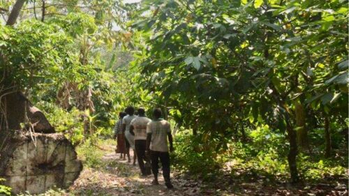 Cacao grows in small-scale agroforestry under shade trees, and is  grown together wther other fruit trees that are primarily used for personal use of the farmers. This system forms a buffer zone to protect the remaining forest in the proximity of Mount Agou.